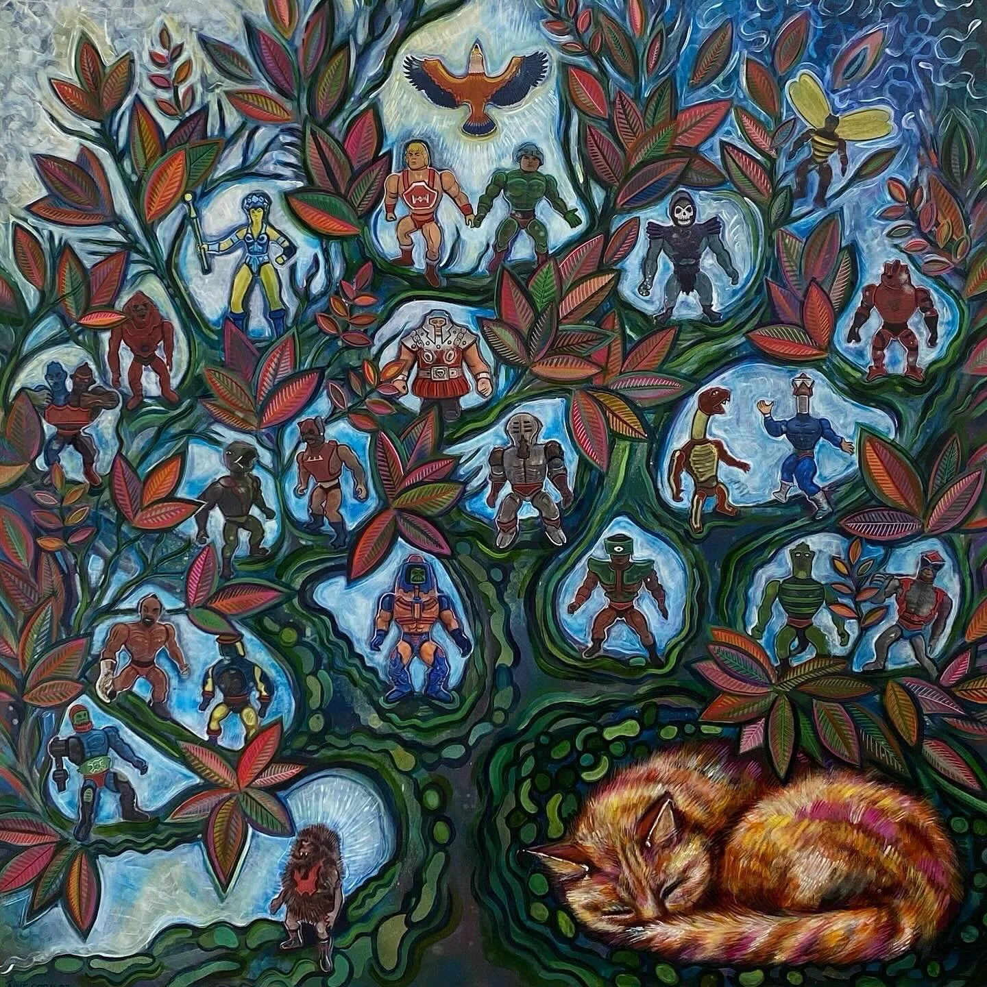 Her artwork is predominately figurative, fantastical and visionary. Combining recognisable elements in unexpected, incongruous ways.
